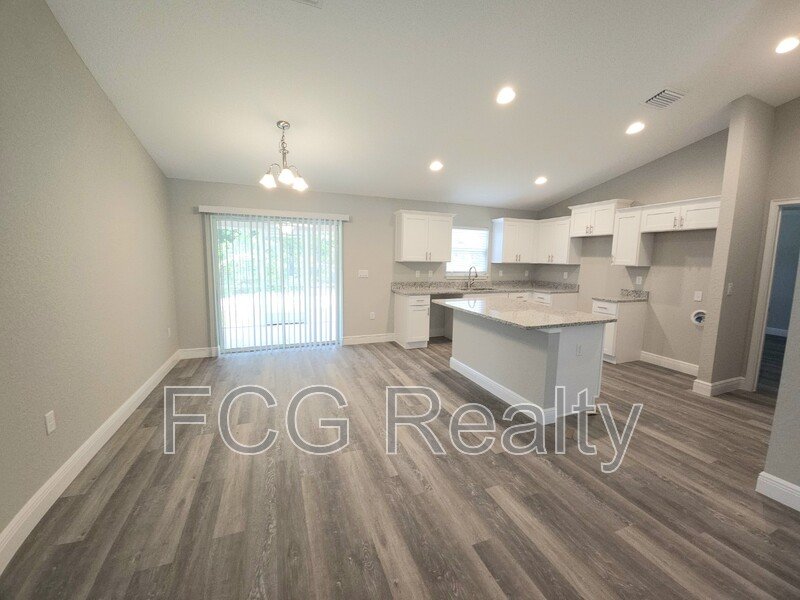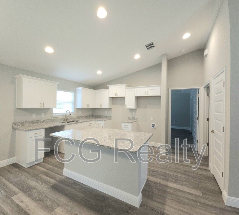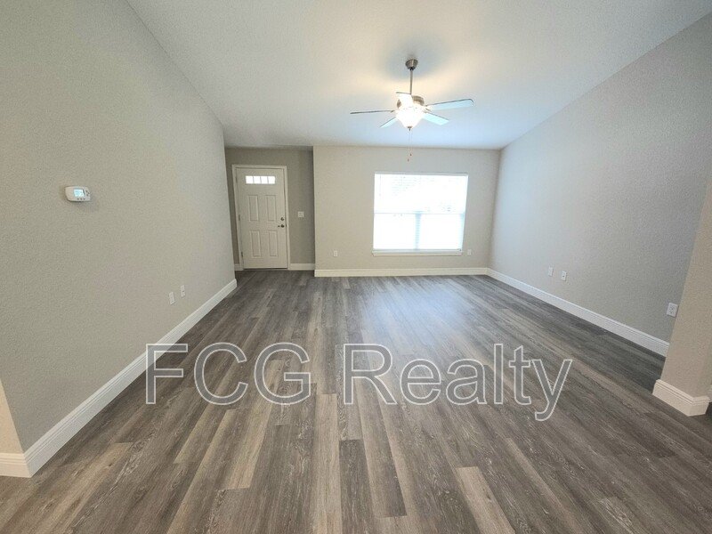 This newly built home features an open layout with vinyl flooring throughout and granite countertops in the kitchen. The kitchen also offers a large pantry and storage with whisper-quiet doors and drawers. The primary bedroom includes a spacious walk-in closet, while the private bathroom is complete with a walk-in shower and linen closet. Guest bedrooms are generously sized, providing comfort and flexibility. A screened-in back porch and two-car garage add convenience and functionality to the home.