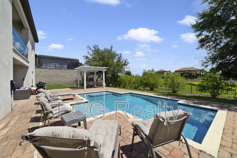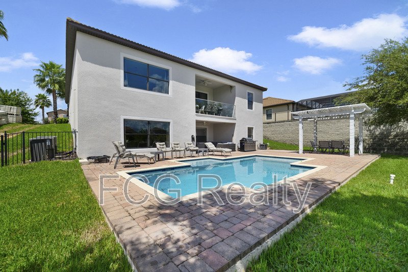 Property comes FULLY FURNISHED! Amazing large 5 bedroom 4 bath home with game room, double balcony Pool and more. This property sits directly on Champions Gate golf course and give you access to the Oasis club with tons of amenities.