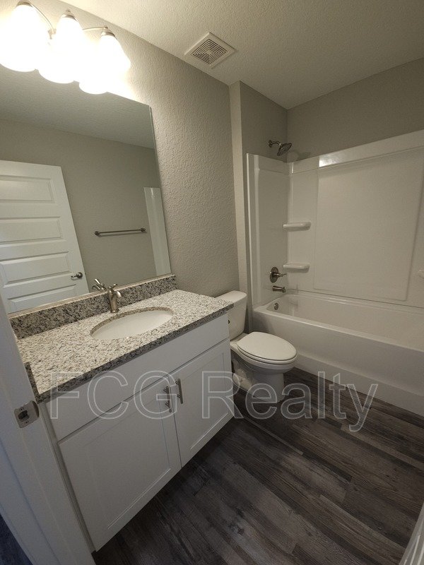 Inside, you'll find luxury vinyl flooring throughout, a modern kitchen complete with granite countertops and stainless steel appliances, and ceiling fans in every room for year-round comfort. The spacious primary suite features a walk-in closet and a private bathroom with a walk-in shower.