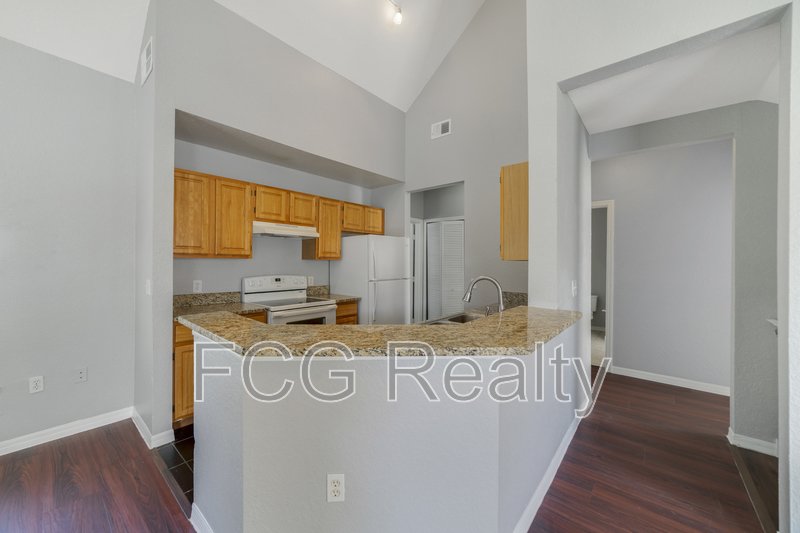 This 2-bedroom, 2-bathroom end unit condo offers a practical layout in a convenient location near Universal Studios Orlando. The unit features an open floor plan, granite countertops in the kitchen, and a walk-in closet in the primary bedroom.
